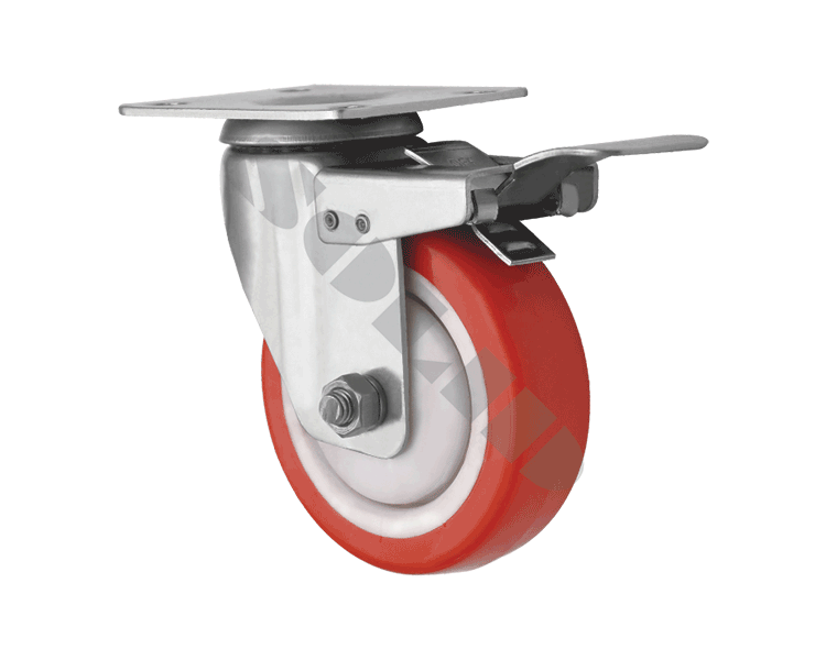 Medium Duty, Pressed Stainless Steel 304 Quality, Plate Type PU on CP Wheel of, Size 100MM Dia x 32 MM Width, Swivel with Brake.