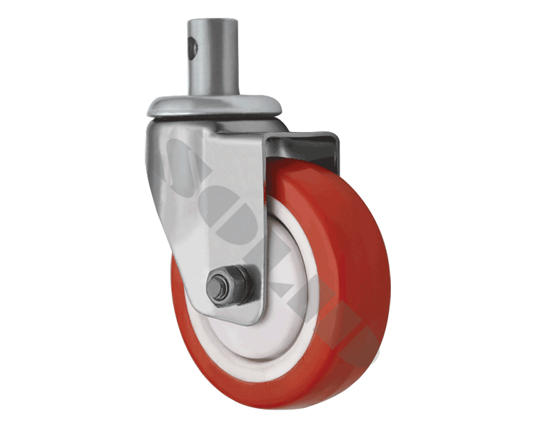 • Med. & H. Duty Fab. S.S. Caster Plate / Pin / Stud Type With PU Wheel